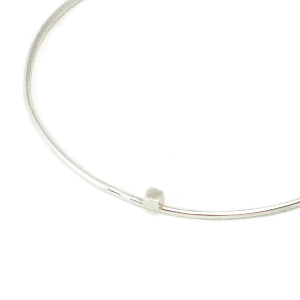 Elegant oval bangle with BLOCK detail. The cube is 3mm squared and set off centre. This delicate piece compliments the rest of the BLOCK collection.