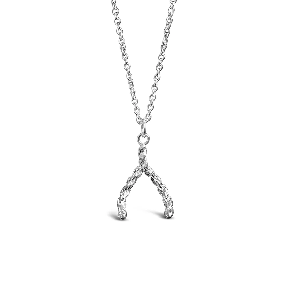 One of our Yvonne's new designs, the Wishbone necklace. Beautifully handcrafted with our signature French rope chain texture this wishbone necklace represents good luck. It comes on a delicate 18...